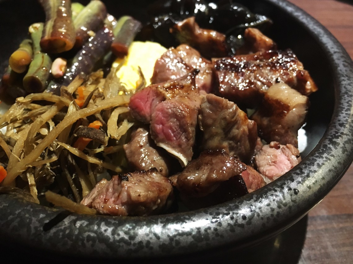 銷售量第一名是角燒牛(稱之為炙燒骰子牛似乎比較好懂),原先覺得這牛肉長得太韌性,沒想到還算嫩,並且是有點脆度、油花量足、易於咀嚼的狠角色,牛肉香與微微焦香配著粒粒分明的熱白飯,讓人欲罷不能,