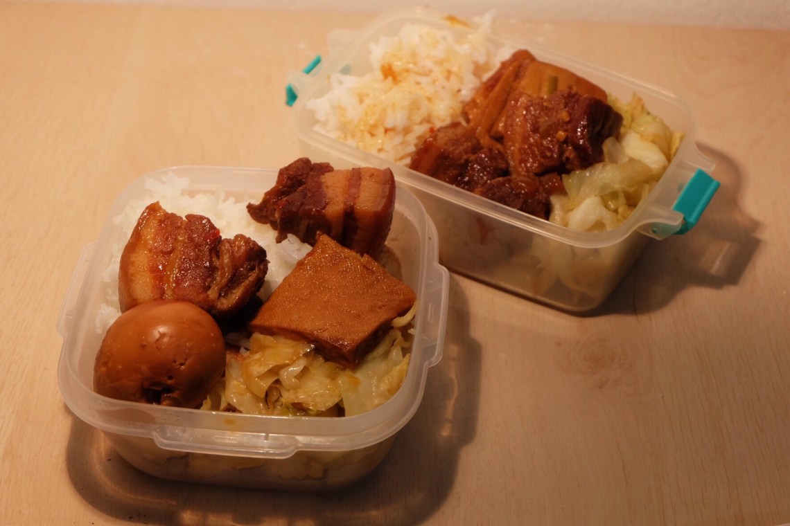 用法國長棍麵包代替白飯,就是中西合璧的美味,麵香與滷肉汁相當合拍!