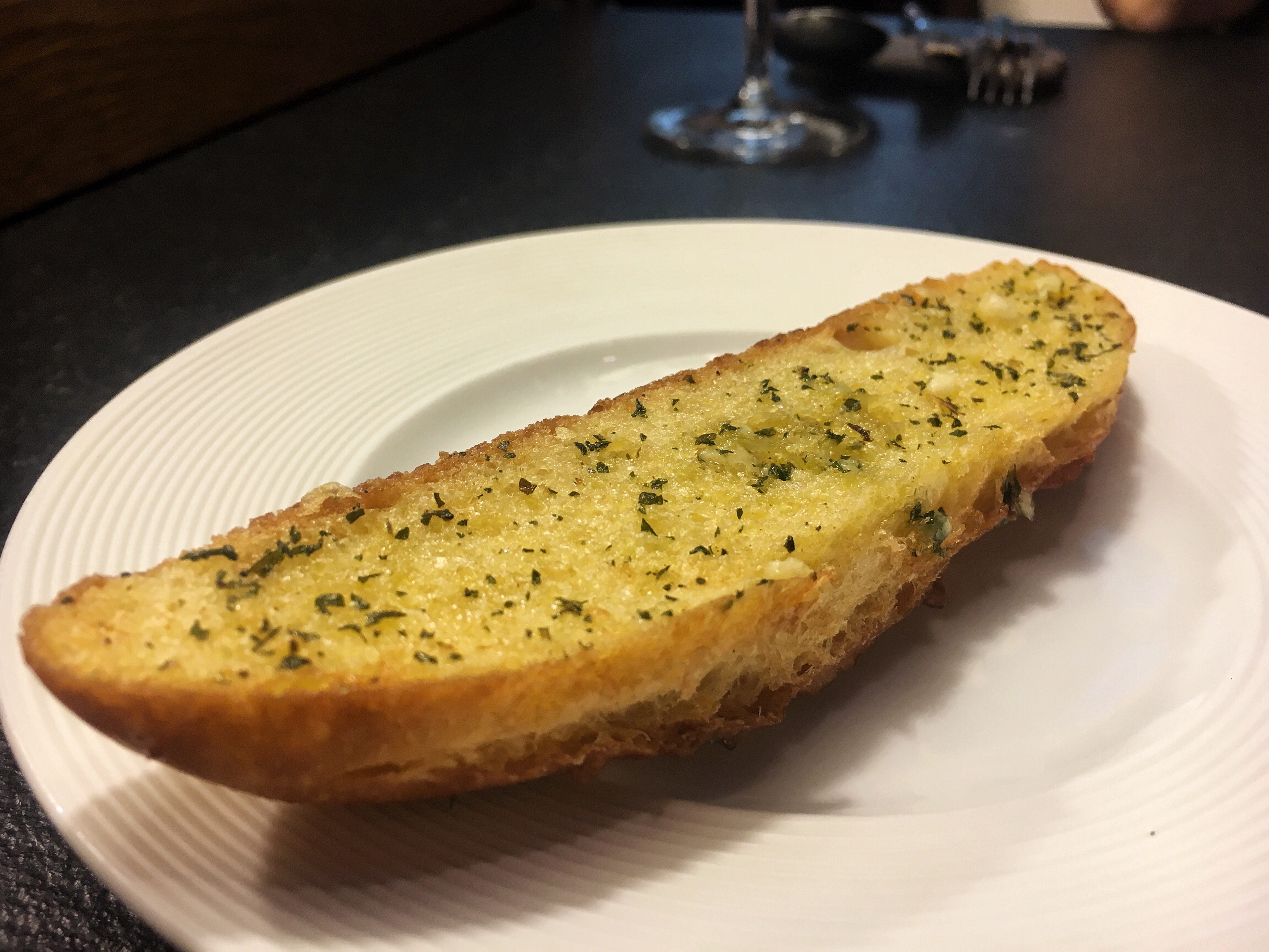 自助吧的鹹食部分告一段落,送上餐前的蒜頭麵包,