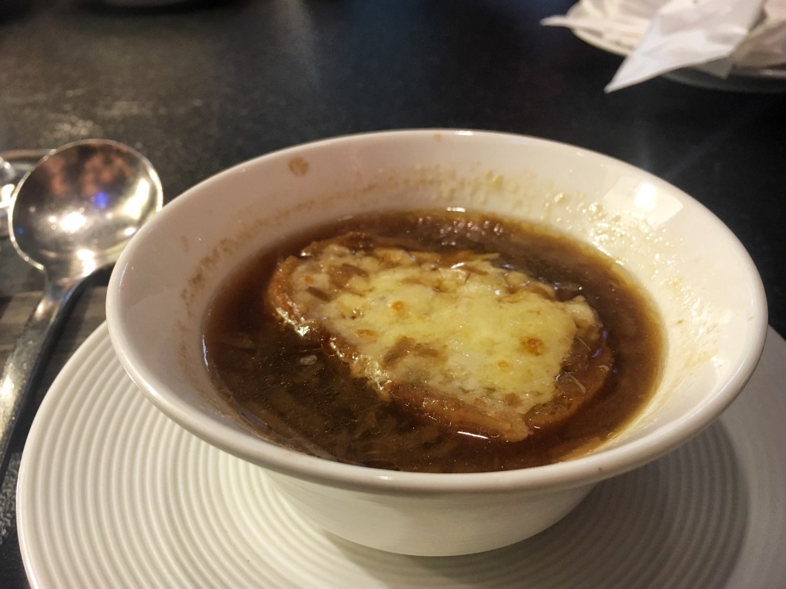 堂弟的法式洋蔥湯,並不特別濃郁,就是很單純洋蔥熬湯的甜味,