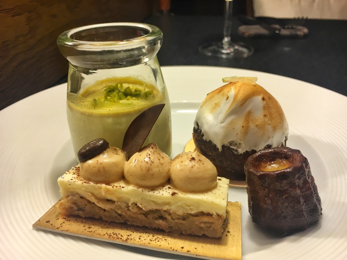 最驚訝的是看到少見的Rum Baba!(法文:Baba au Rhum)之前在巴黎吃到蛋糕浸泡濃厚蘭姆酒的經典版本,這裡則以新鮮芒果醬取代;右邊被巧克力片遮住的布朗尼苦甜濃郁,是今日喜愛的甜點之一↓