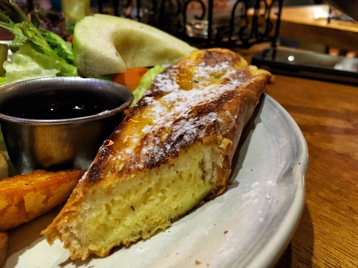 還有橙酒香的蛋煎長法麵包!印象中硬梆梆的法式吐司吸飽蛋液,煎到表面微焦再淋上蜂蜜,軟嫩香甜真是讓人神魂顛倒😍