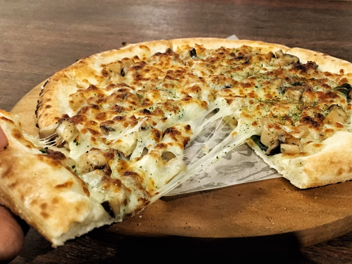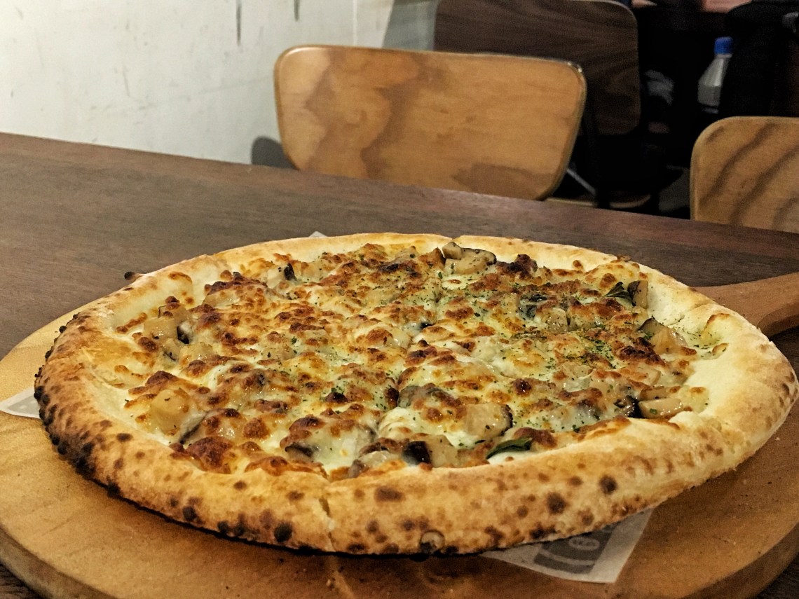 披薩上頭是切丁的菇類,料沒有多到爆炸但也覆蓋了整張麵皮,菇類配上淡淡奶香的莫札瑞拉起司味道一級棒🧀