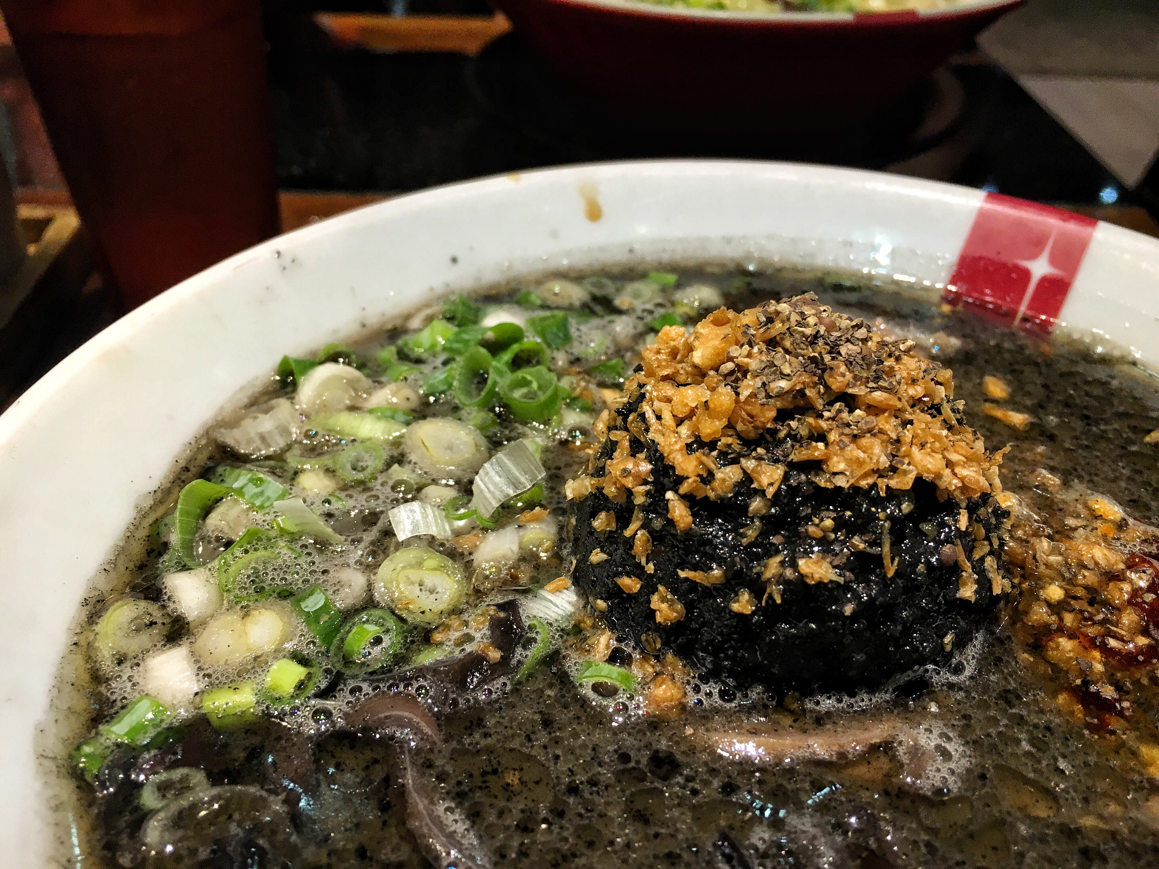 黑壓壓的拉麵讓人想起義大利的墨魚麵,差別在於黑王不會讓牙縫變得烏漆媽黑,就算約會也能放心吃(還是要適時擦一下嘴角)