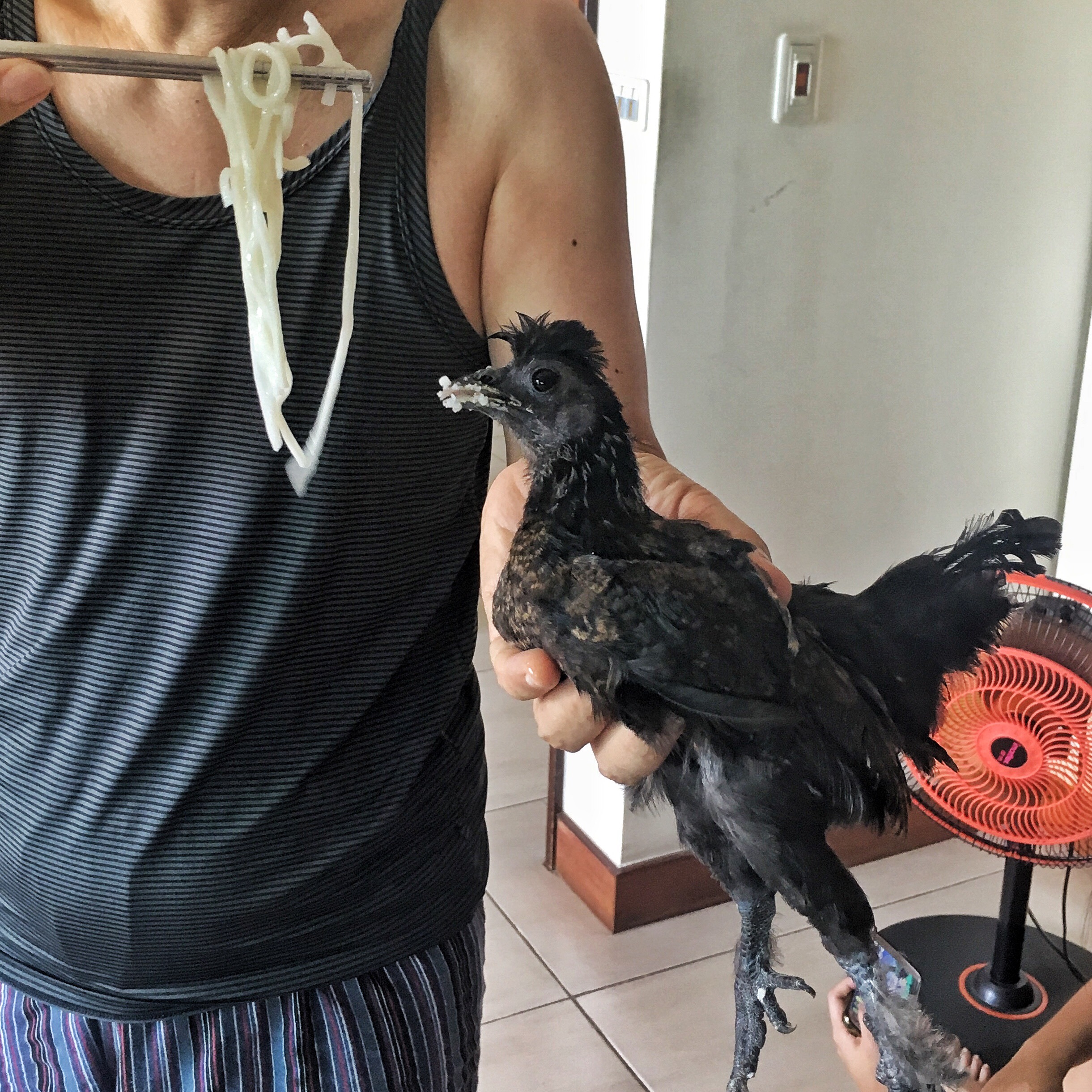 鏡頭拉回台南的家裡,爸爸最近不只是我和妹妹的爸爸,還是一隻瘦巴巴烏骨雞的爸爸🦃