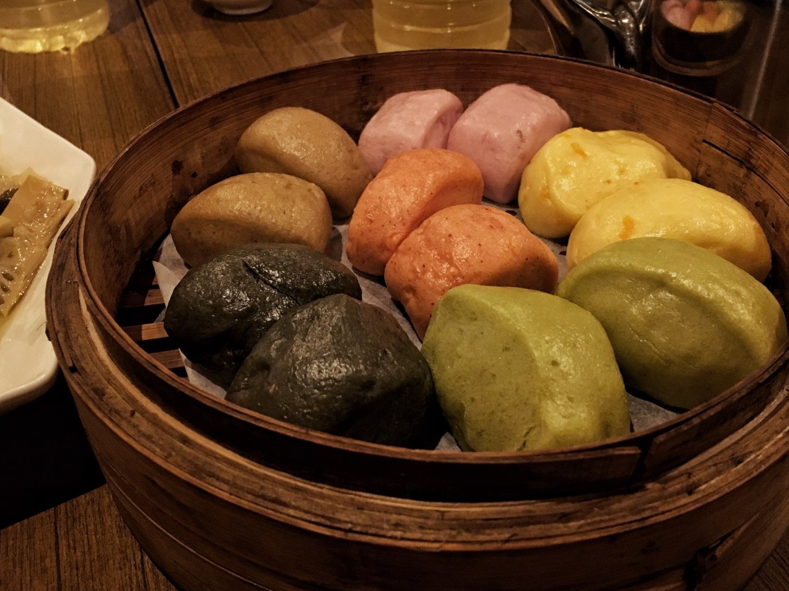 彷彿是八色小籠包的五行手工饅頭外型和味道都很有手工感,每種顏色分別是不同口味而非色素,可以配著其他菜吃