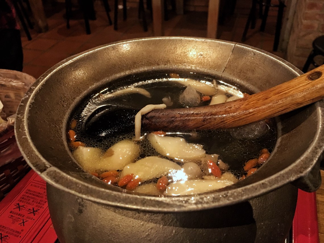 這鍋雞湯其實一入座就率先送上,可能因為有爐子加熱不怕冷掉,最後才被大家注意到