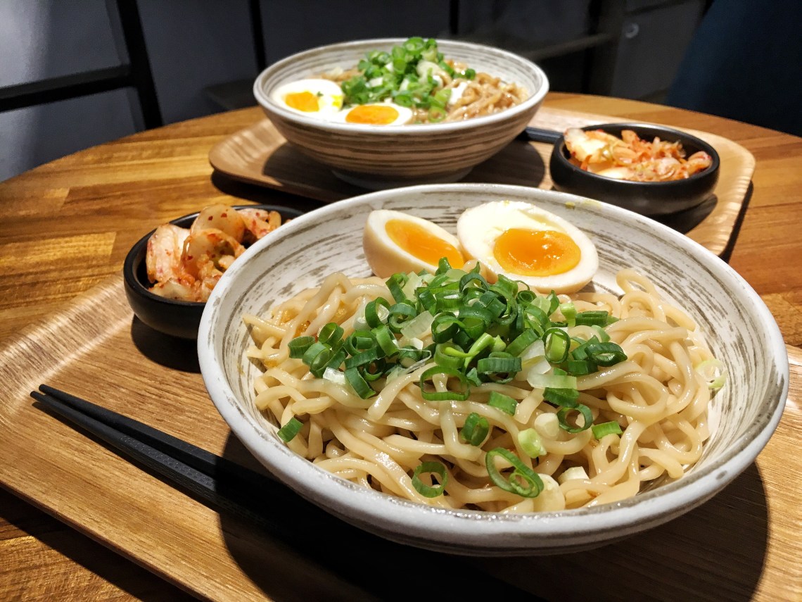 麵食都付一小碟泡菜,用的是粗度接近烏龍麵的麵,滿有彈性跟嚼勁,上頭灑了很多蔥花