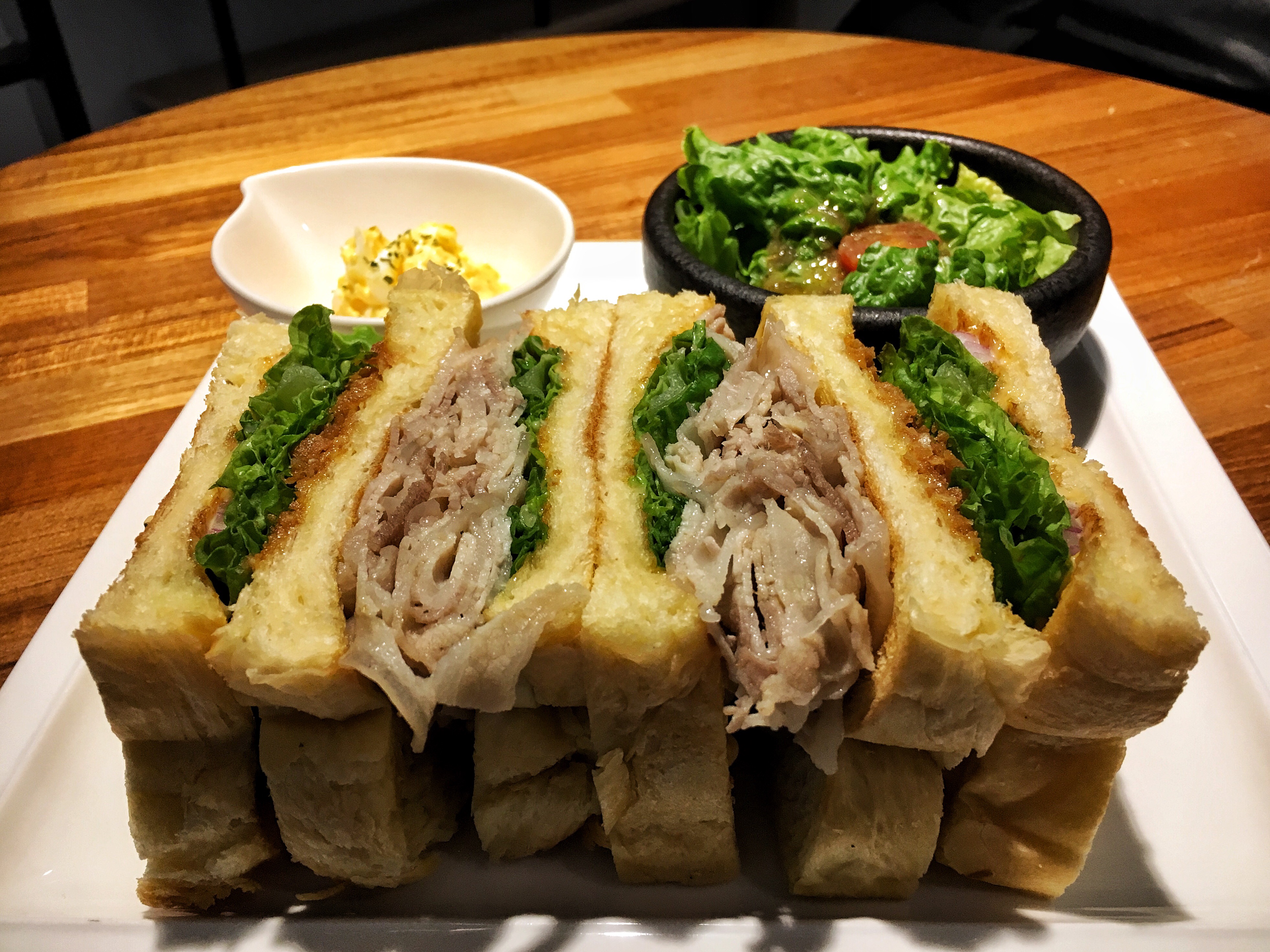 我點的蔬麻三明治最後上桌,淡黃的丹麥土司裡塗了麻辣美乃滋,夾上油條碎、生菜和豬五花,彷彿真的在吃麻辣鍋🍲