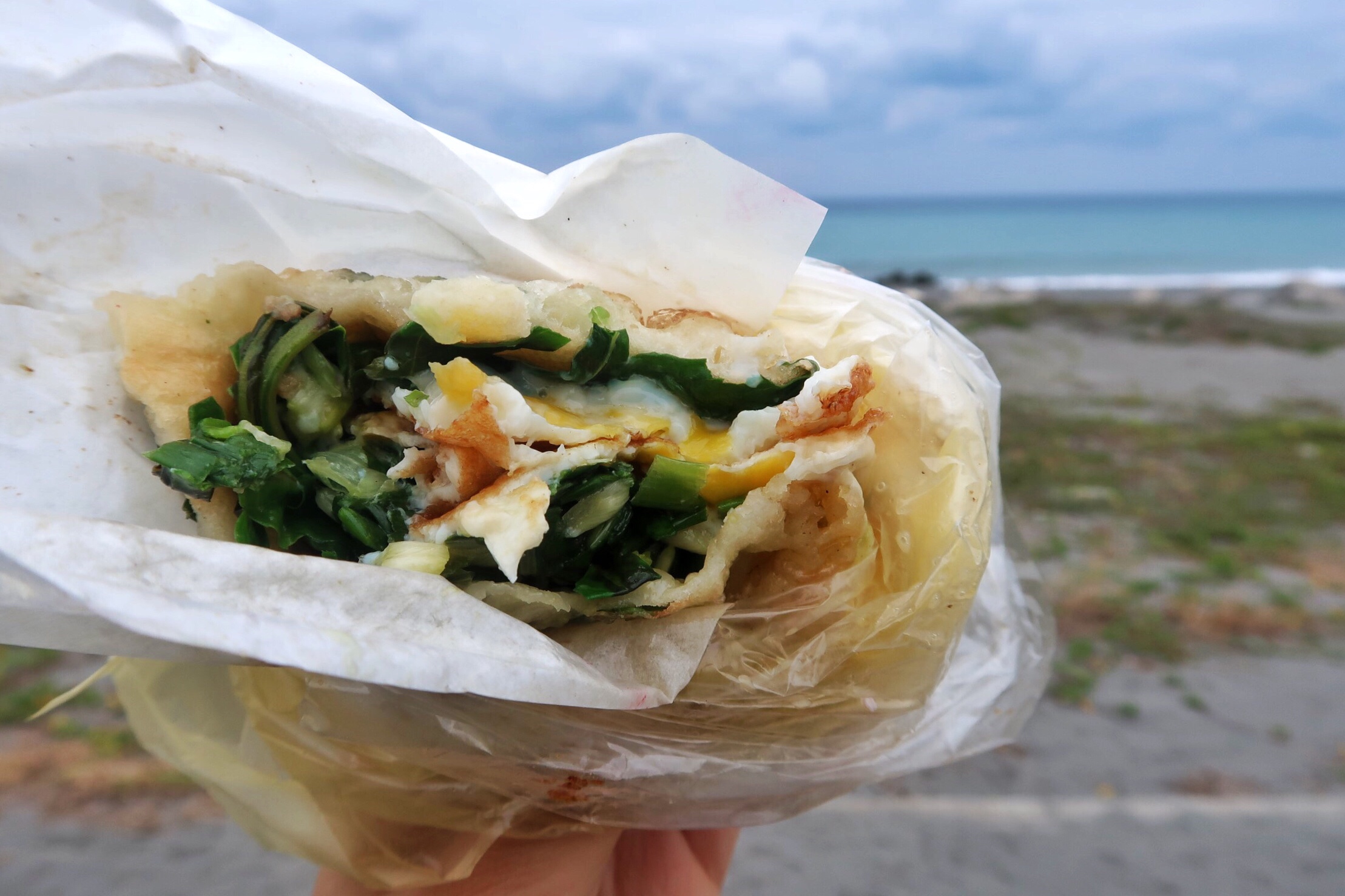 這是來自台東的朋友推薦的海濱蔥油餅,還特別交代一定要點雙蛋雙蛋!