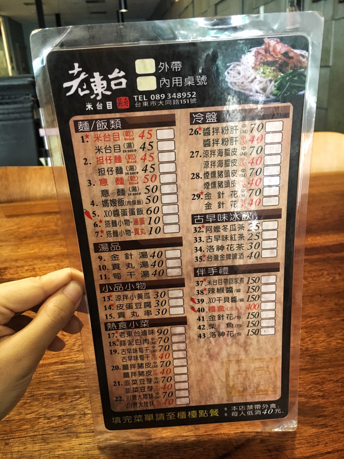 原本要吃榕樹下米苔目當早午餐,早上經過卻發現沒有開,查了地圖發現老東台也是有名氣的店家就毫不遲疑的踏入 ; 店裡明亮寬敞,小菜也都盛得乾乾淨淨,比較像是餐館而非小吃攤