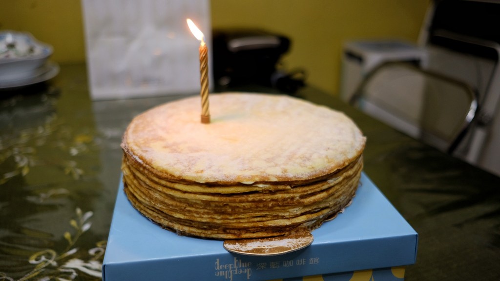 甜點是家裡每逢重要場合必買的深藍原味千層蛋糕,蛋香十足,永遠吃不膩,價錢卻從900飛漲成1800(有夠誇張 我的薪水漲幅也可以這麼大或更大嗎)
