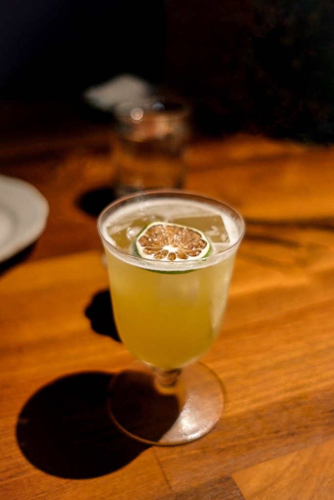 (蘇茲龍膽利口酒 / 自製青草茶糖漿 / 萊姆 / 蘇打水)