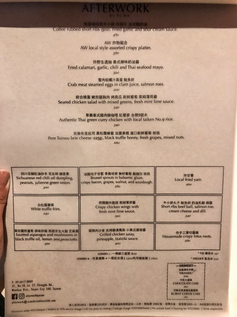 位在西門町步行區巷弄的三樓店面,白天是早午餐店ACME Breakfast Club,晚上搖身一變成餐點和酒類都很不錯的餐酒館AFTERWORK by ACME🥂