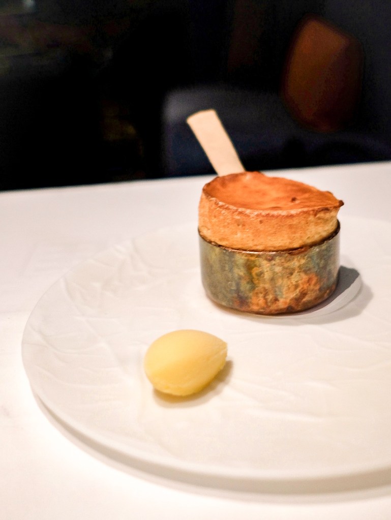 這是四道中甜度最低的一款,有慕斯口感的蛋白霜、底下的檸檬金桔果凍與淡淡橙酒香,就是大人的味道吧🍋
