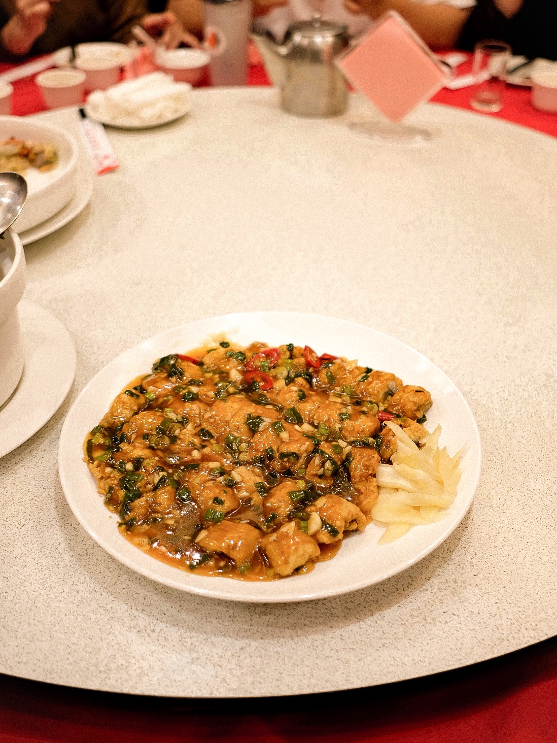 厚厚的鰻魚油炸後淋上酸甜帶蒜的勾芡醬汁,香氣十足,第一次吃到這樣作法的鰻魚,口味偏重但味道很好