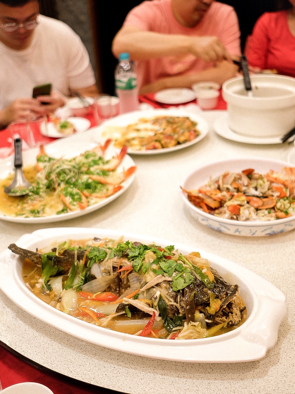 阿美飯店可以單點,也有針對不同人數推出的合菜,這天點的是 NTD 10,000 的全席,13個大人吃得非常飽還外帶了不少
