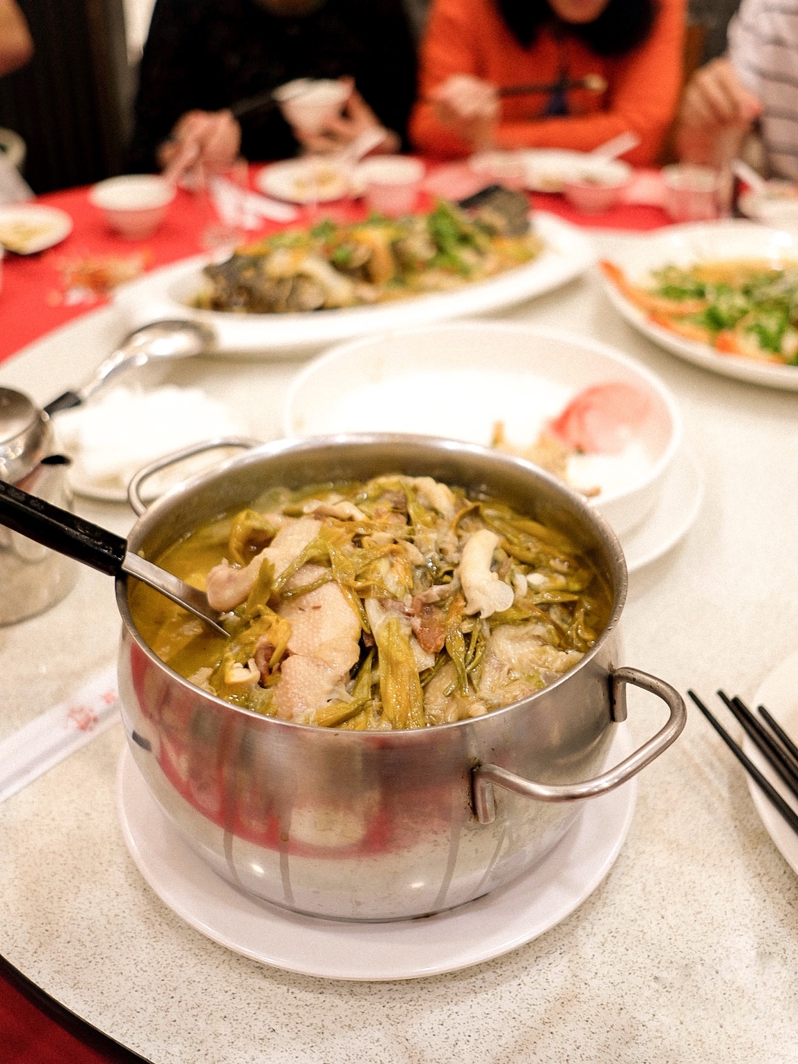 砂鍋鴨是阿美的招牌菜,濃濃的大骨扁魚湯中有軟軟吸滿湯汁的大白菜,有菇類有金針,還有滿滿燉到骨肉分離的鴨肉,真的是必點的一道!
