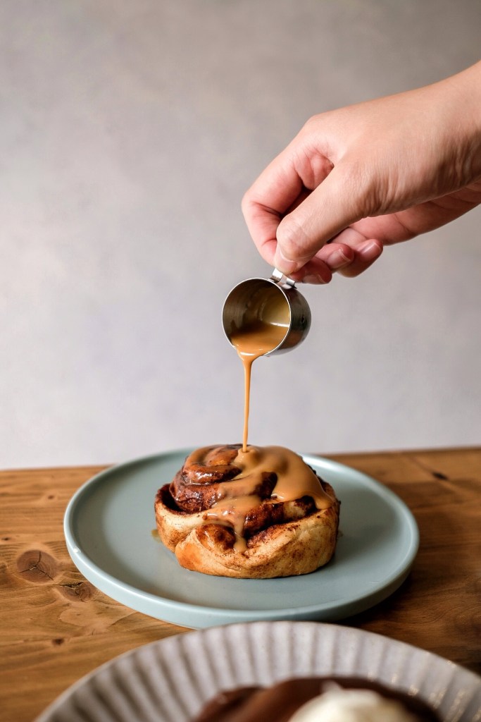 這次點了巧克力太妃糖肉桂捲和黑糖核桃佐白醬肉桂捲,剛出爐熱呼呼的捲很柔軟吃得到麵香,濃郁的黑巧克力醬和肉桂香氣相得益彰好吃得不得了,內用限定的黑糖核桃搭配打發鮮奶油更是無敵美味,是心目中前幾名有特色的肉桂捲🌀