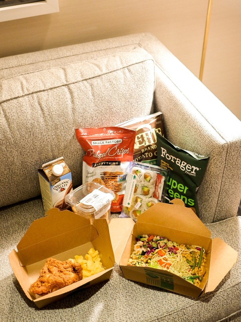 長輩耐不住長途飛機只能坐不能躺,又想趁轉機的時候購物一波,於是選擇了日航經成田機場轉機至洛杉磯的商務艙,以這個艙等來說座位偏小但我覺得飛機餐是我吃過最好吃的~絕對不會睡到不想吃飯🤤