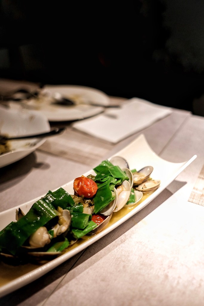 很像海產熱炒會出現的菜色但層次更多,用山蘇和剝皮辣椒炒大顆蛤蠣,微辣而多汁