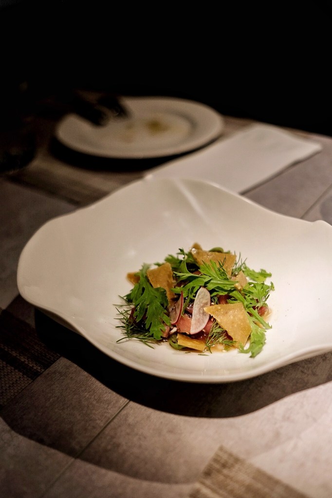 (這天選了一橘酒一紅酒佐餐,先上的是橘酒,喝到後來已經微醺到忘記要問紅酒是哪一瓶,照片也越來越亂拍🥲)