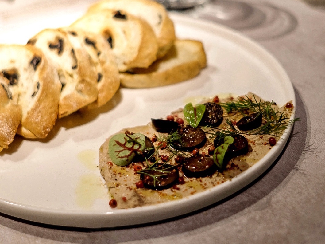 也是我愛的濃厚味道,雞肝慕斯的鹹度用巨峰葡萄片中和,抹在烤酥的橄欖歐包上好好吃,內臟味不算重,每天吃沒問題!