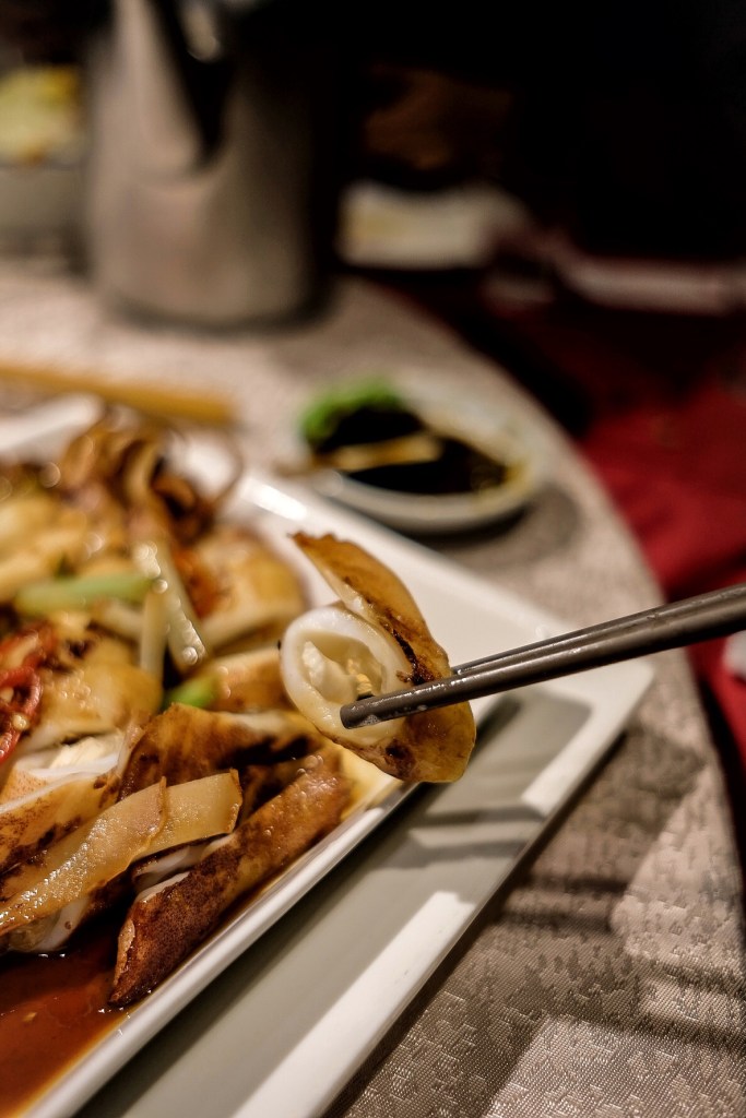 - 芹菜炒海參與烤中卷拼盤