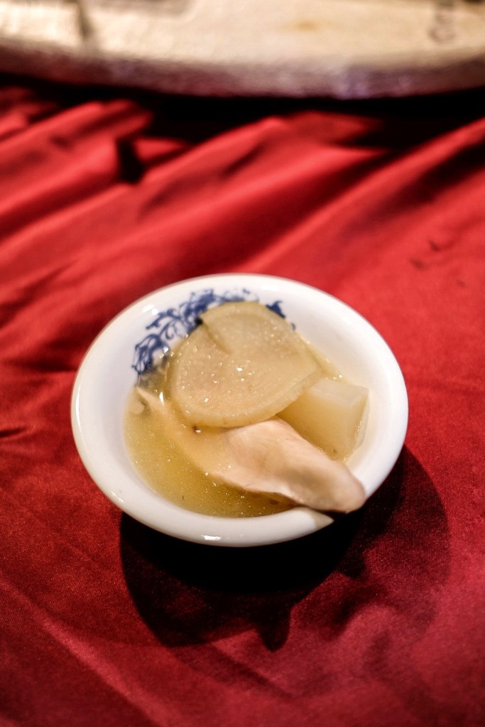 三代同堂雞湯是本日最喜歡,玉品海參則像從小當家漫畫裡跑出來的一般驚人(下滑看圖片);整體食材新鮮,調味清爽不會過重,而且菜色幾乎是過往在台南或台北都沒有吃過的,完全是大開眼界的一餐!