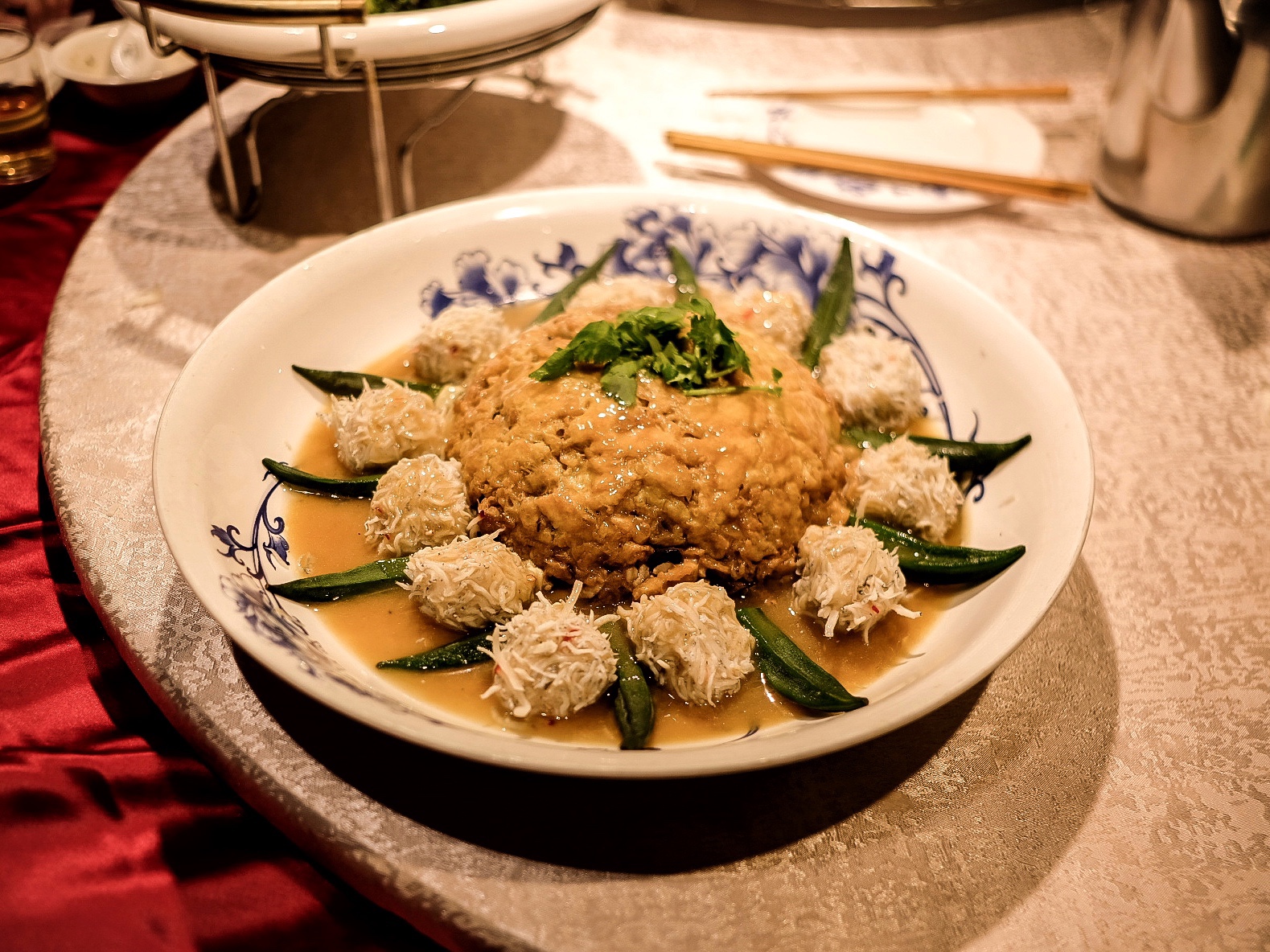 佐以吻仔魚花枝漿和秋葵