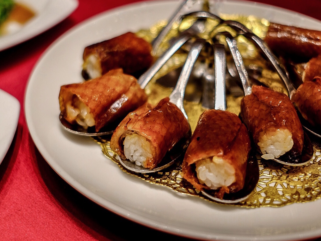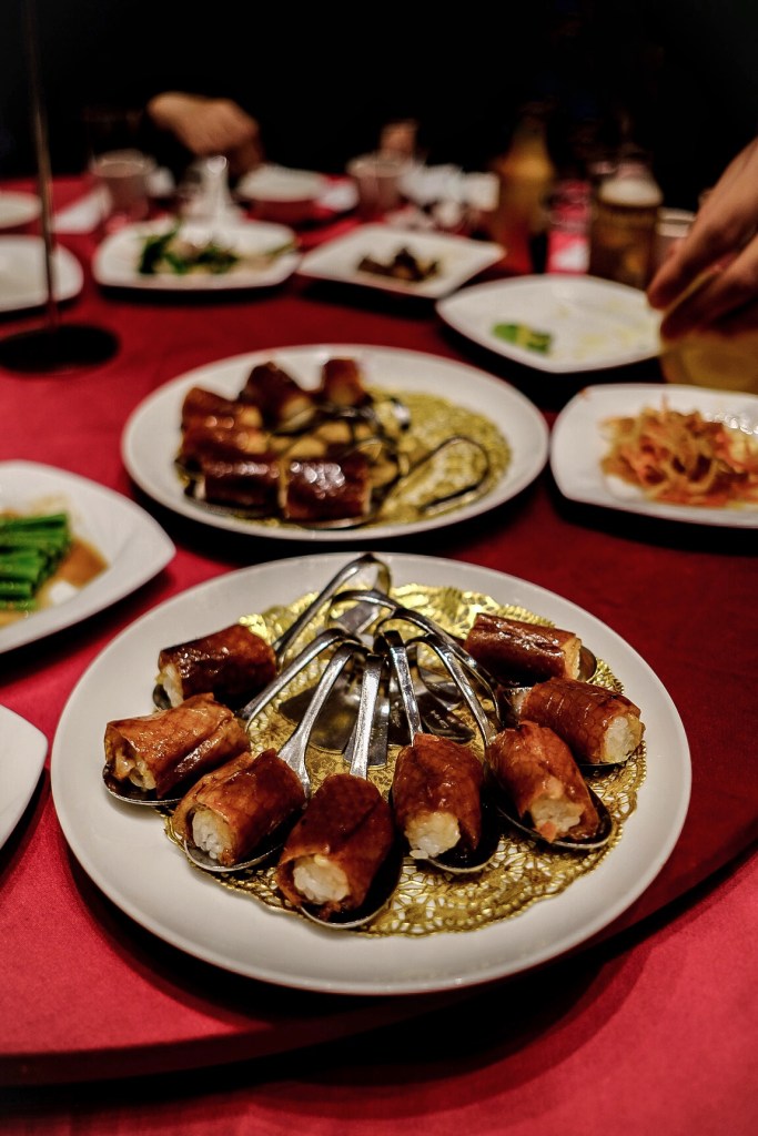 主打的烤鴨肉質並無特別驚艷,但片皮鴨握壽司和多年前來訪吃到的味道一樣好,對紅樓中餐廳印象最好的就是這道了🦆 和上回吃的五人套餐相比,這次點十人套餐吃了更多道菜,可能因為菜色多樣化的關係覺得比上次吃起來更好吃有趣(像是烤鴨捲餅就多了包蔥油餅的版本)