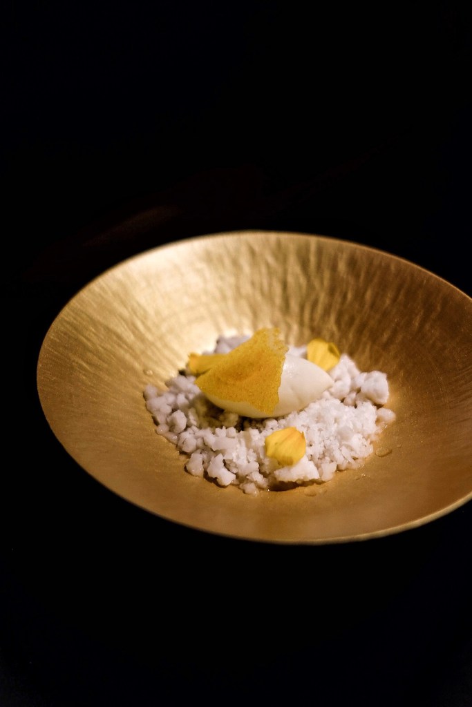 佐以蛤蜊高湯、奶油、柚子和番紅花等調和的醬汁