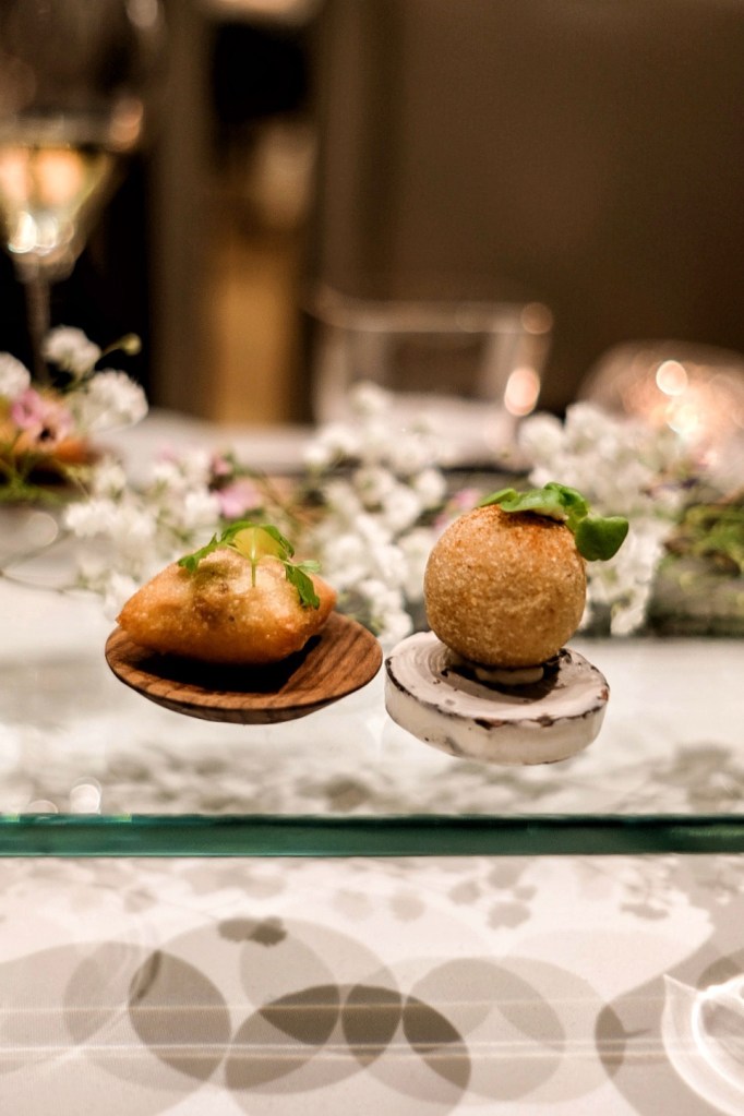 油封鴨、白豆及九層塔酥炸而成的可樂餅球