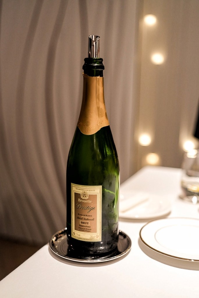 餐酒分成三杯和五杯兩種選擇,三杯是一杯氣泡酒、一杯白酒及一杯紅酒,五杯則是一杯氣泡酒、兩杯白酒及兩杯紅酒,我們選擇的是五杯的組合,酒給的超級大器,不過不懂酒的我沒有覺得多一種紅白酒特別搭餐,因此建議酒量普通的人視自身情況選擇