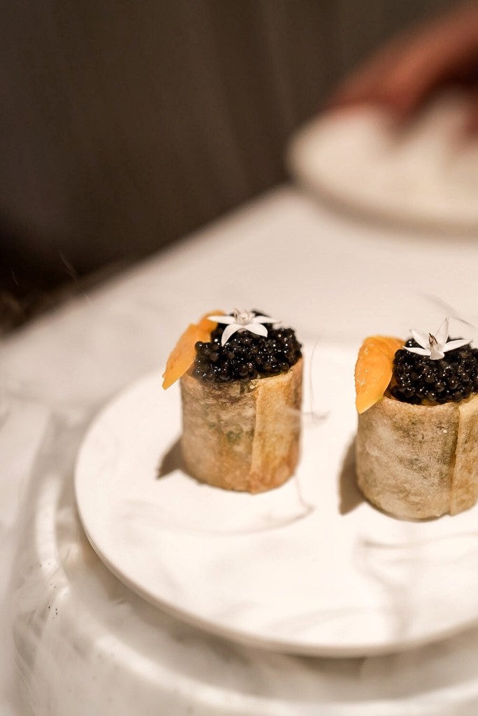 開胃小點是旗魚韃靼 以酥脆塔殼包成柱狀