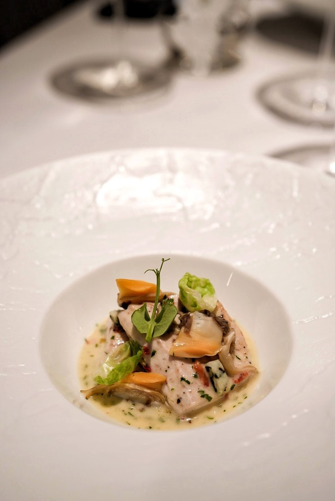 這天的餐點是我喜歡的組成方式:由帶明顯鮮味的食材為主軸,再以其他能夠吃出食物原味並和主食材相得益彰的配料畫龍點睛,菜色設計有一點de nuit的影子,幾道有日本風味的料理和乳鴿也讓人聯想到祥雲龍吟(點我看祥雲龍吟食記),每一道都很合我的口味