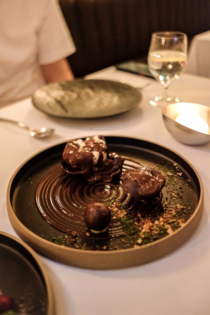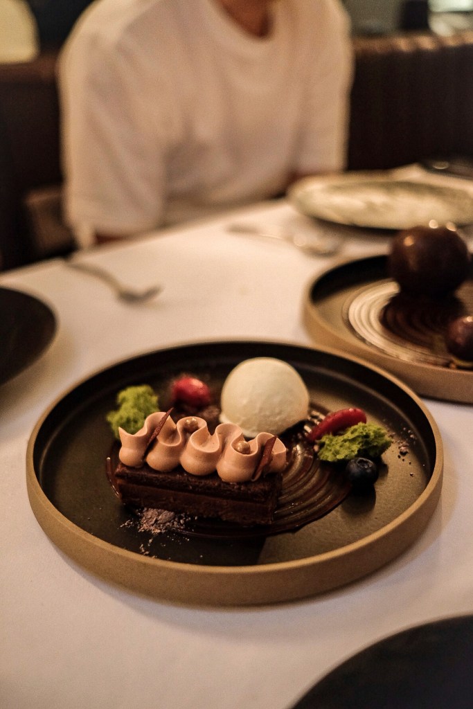 上桌後由服務生桌邊淋上熱黑巧克力醬