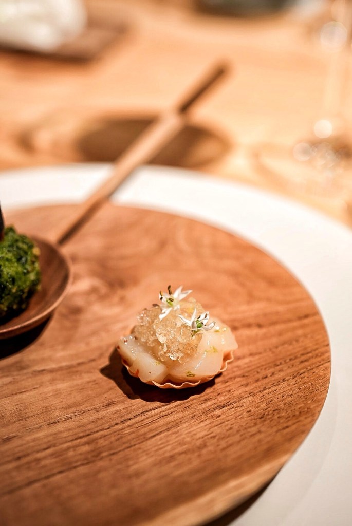 一款是由生干貝、蘆筍、檸檬皮及蘋果晶凍