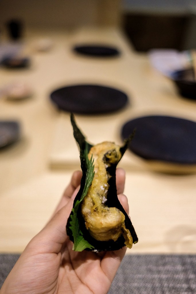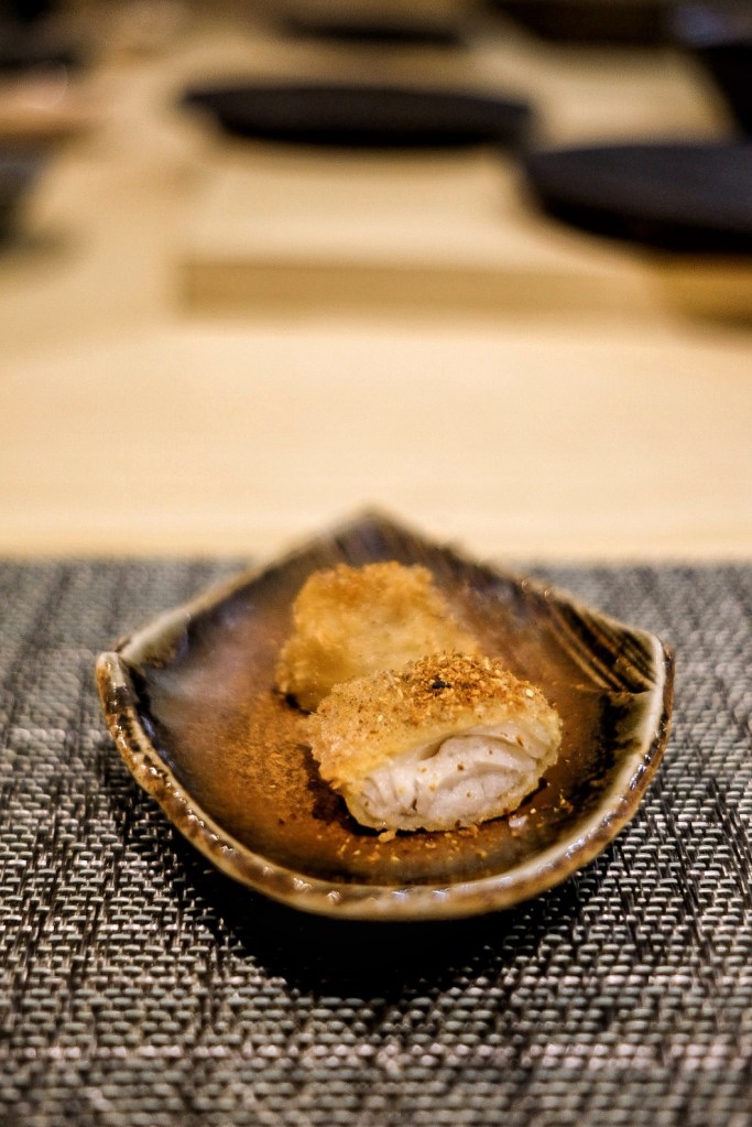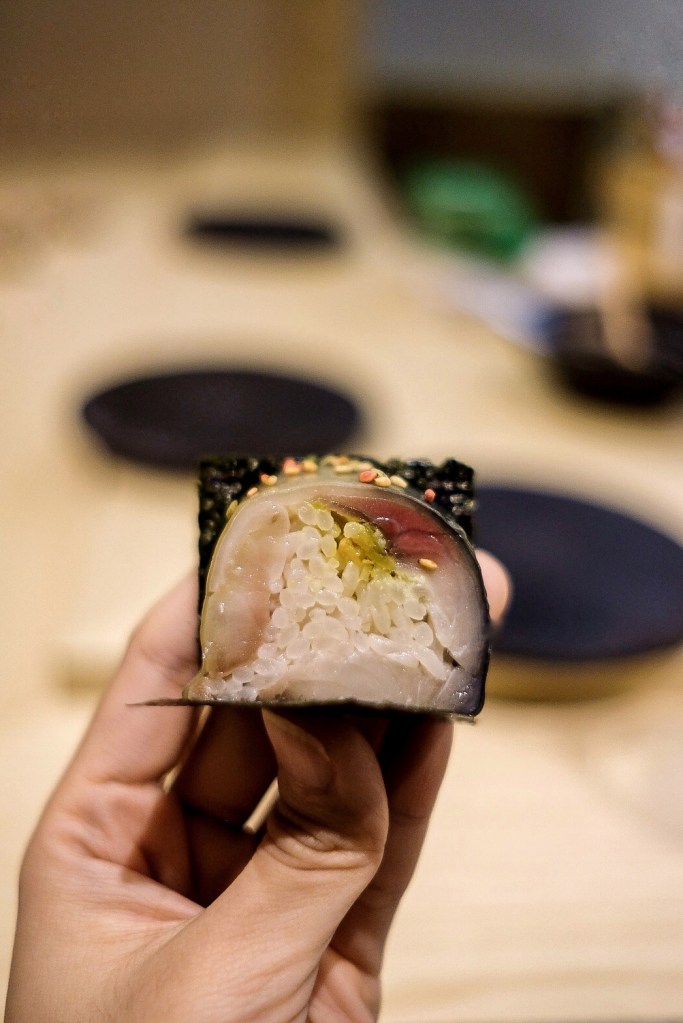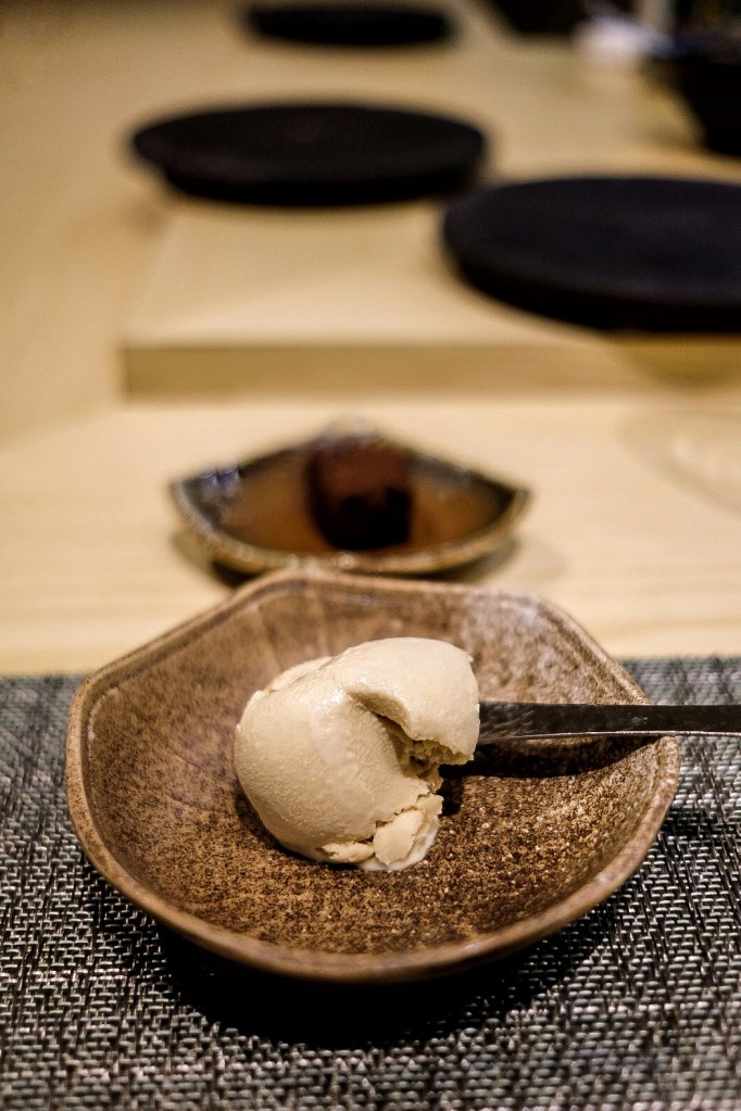 老實說吃過幾次omakase還是沒有很懂其中的精髓,對海鮮的切法和熟成與否、舍利的口味和比例等還是沒什麼概念,總覺得要是再更瞭解一點的話能更明白料理的深度;不過這裡的海鮮品質和剛剛好能襯托食材原味的調味是無庸置疑的,最喜歡的幾道是清爽不油膩的炸白鰻握、烤得入味又不過鹹的圓鱈柚庵燒、有鯖魚香而無腥味的棒壽司,還有餐後甜點自製胡麻冰淇淋,整套吃完飽足卻不會感到負擔