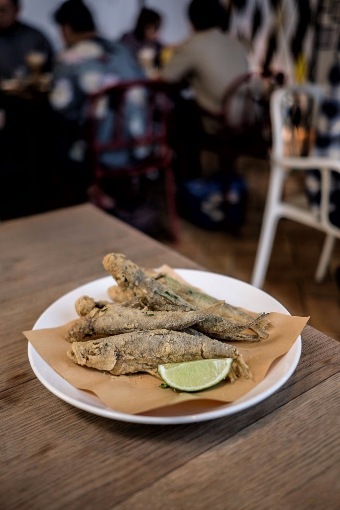 這次再訪,外場服務生和前幾次的不同,似乎對餐點沒有這麼熟稔,相同菜色也和以前吃到的不太一樣,比如蘑菇麵的麵體由波浪麵換成寬扁麵、戰斧豬油脂比例變少而香料味更突出;不過整體來說還是喜歡的,特別是餐前外酥內柔軟的法棍、調味和酥炸得宜的炸目光魚,還有奶香十足的橄欖油冰淇淋,是和夥伴都覺得好吃的菜色