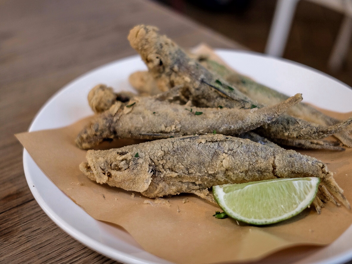 這次再訪,外場服務生和前幾次的不同,似乎對餐點沒有這麼熟稔,相同菜色也和以前吃到的不太一樣,比如蘑菇麵的麵體由波浪麵換成寬扁麵、戰斧豬油脂比例變少而香料味更突出;不過整體來說還是喜歡的,特別是餐前外酥內柔軟的法棍、調味和酥炸得宜的炸目光魚,還有奶香十足的橄欖油冰淇淋,是和夥伴都覺得好吃的菜色