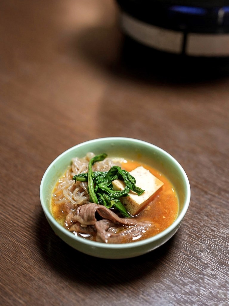 壽喜燒套餐分極み、特選、松、竹四種,每個人都必須點一份餐;極み除了壽喜燒以外還有一兩道肉料理,我們食量偏小所以不考慮,竹當天沒有供應,最後點了兩份特選和三份松,差別在前菜和肉的等級