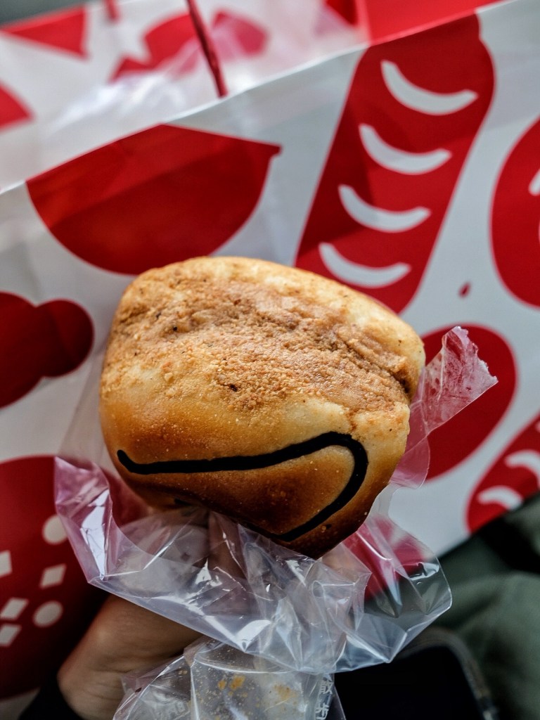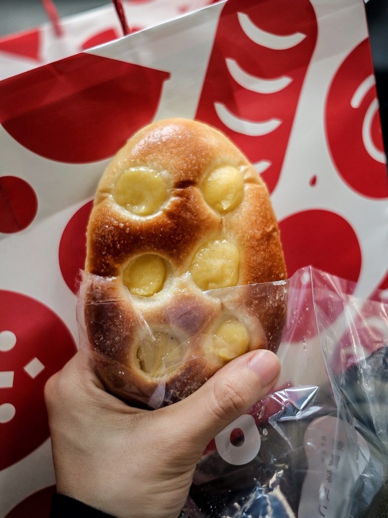 比起平時在麵包店買到的台式麵包,蜷尾家パン的包體看起來精緻一些卻不失古樸趣味,這天吃到的每款都又香又軟,自己覺得餡多而且細緻的紅豆麵包和奶酥麵包很不錯,私心喜歡的則是充滿童年回憶的蔥胖和巧克力螺雷