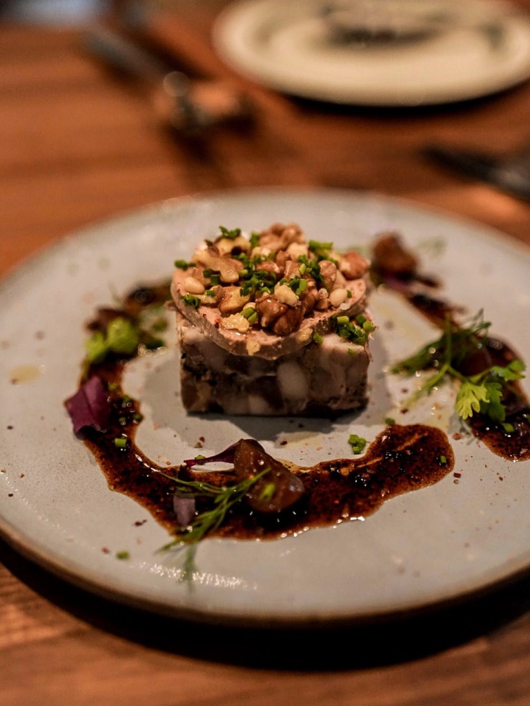 含兔肉的野味肉凍、鴨肝醬與堅果