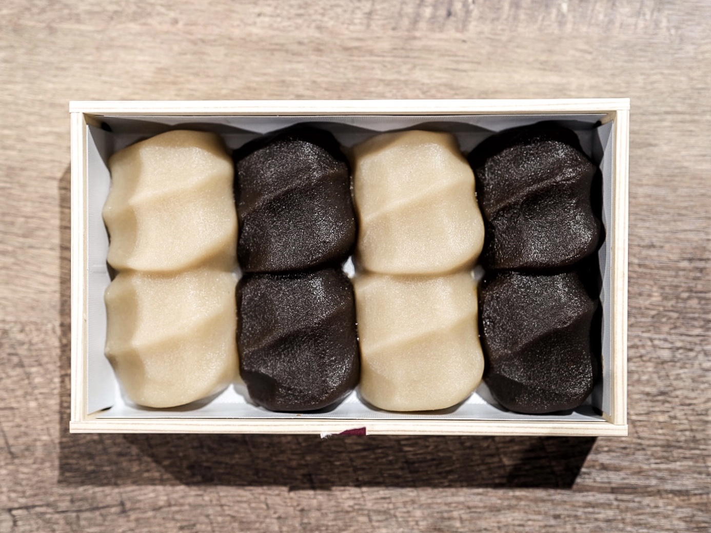 柔滑的豆沙包彈性和米香十足的麻糬,用木板挖著吃很療癒,因為超級甜的緣故,如果能搭配冰涼的無糖茶更理想!比起黑糖口味,我自己私心更喜歡單純的豆沙