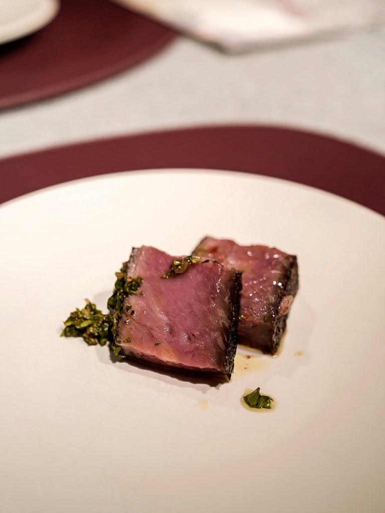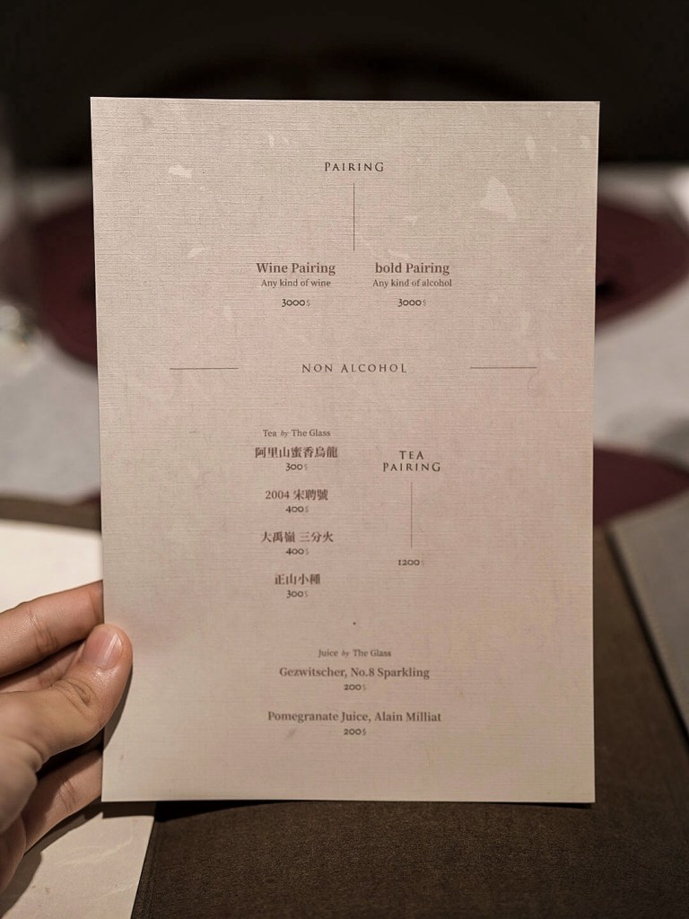 飲品部分可以單點也能選擇有各式酒款的bold pairing/紅白酒為主的wine pairing/無酒精的tea pairing,我點的tea pairing共有四杯冷泡茶,每款都好喝而且夏日搭餐特別清爽,好希望每間餐廳都有這麼好喝的冷泡茶