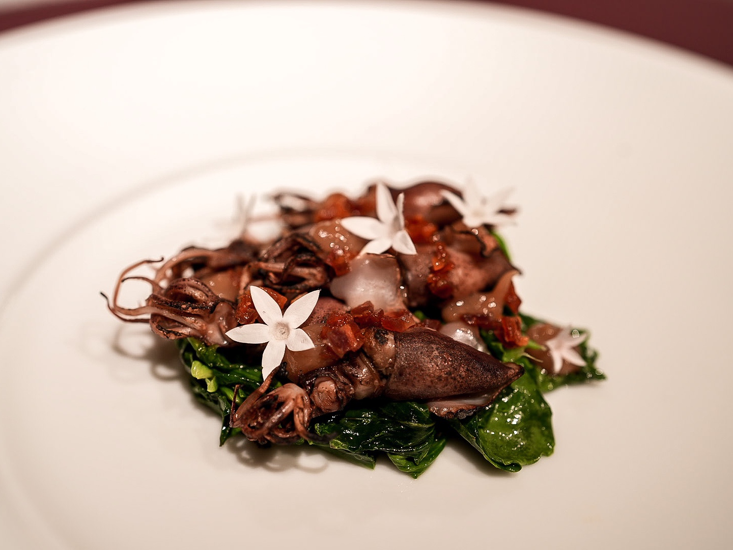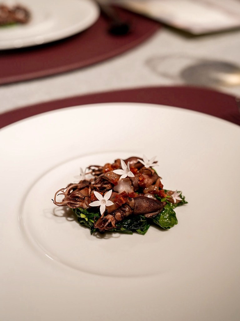 餐廳主要提供風格多元的西式套餐,每季價位不同,從菜單上的菜色命名可以看出主廚致力於創造用餐的故事性;這次吃到的菜色口味比較重但味道很好,我自己最喜歡的是濃濃春夏感的螢烏賊、三分熟熟伊比利豬搭配歐防風泥、加點的香料肋眼牛排,以及當日最愛的——布里歐法式吐司淋芒果丁、橄欖油冰淇淋及野薑花瓣,直白好吃!