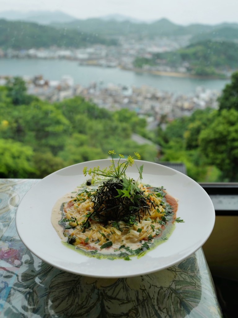 陰雨綿綿的這天,才剛逛完千光寺和寺頂展望台,就開始起風和下大雨,隨手查到尾道市立美術館旁邊有家Google map評價還可以的景觀餐廳Restaurant Petit Anon,正好可以讓我們到室內吃午餐稍作休息