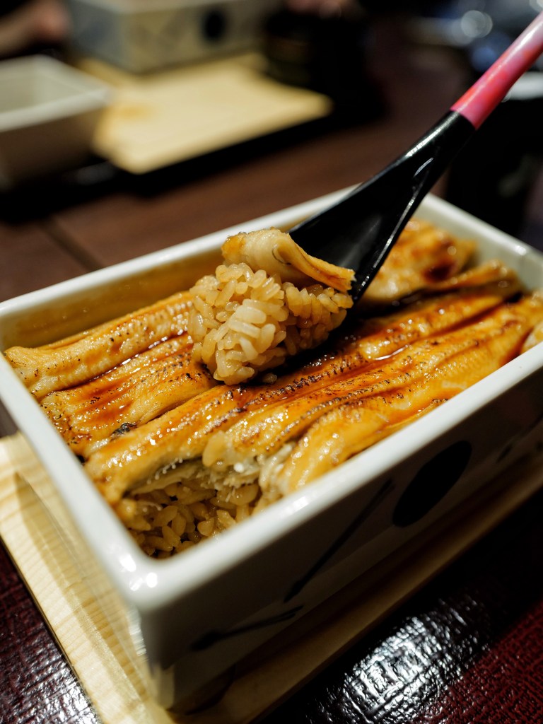 小小的店內大多是日本人,詢問過店員後確認四個人可以只點兩份定食,於是點了兩份穴子めし JPY 2300(星鰻蓋飯)一起分食,星鰻相對鰻魚顏色更淺、吃起來脂肪含量更少更柔軟,蒲燒後配上粒粒分明的日本米溫暖美味!如果不吃鰻魚或想試試別種料理,菜單上也有牡蠣蓋飯、炸牡蠣等可供選擇