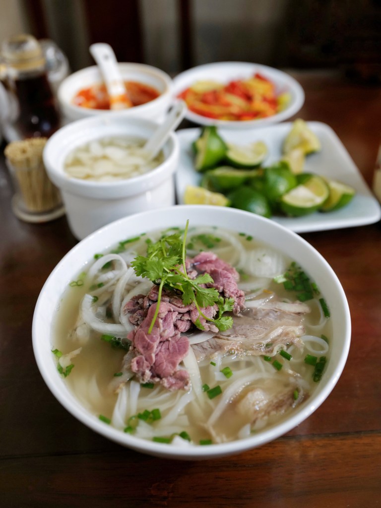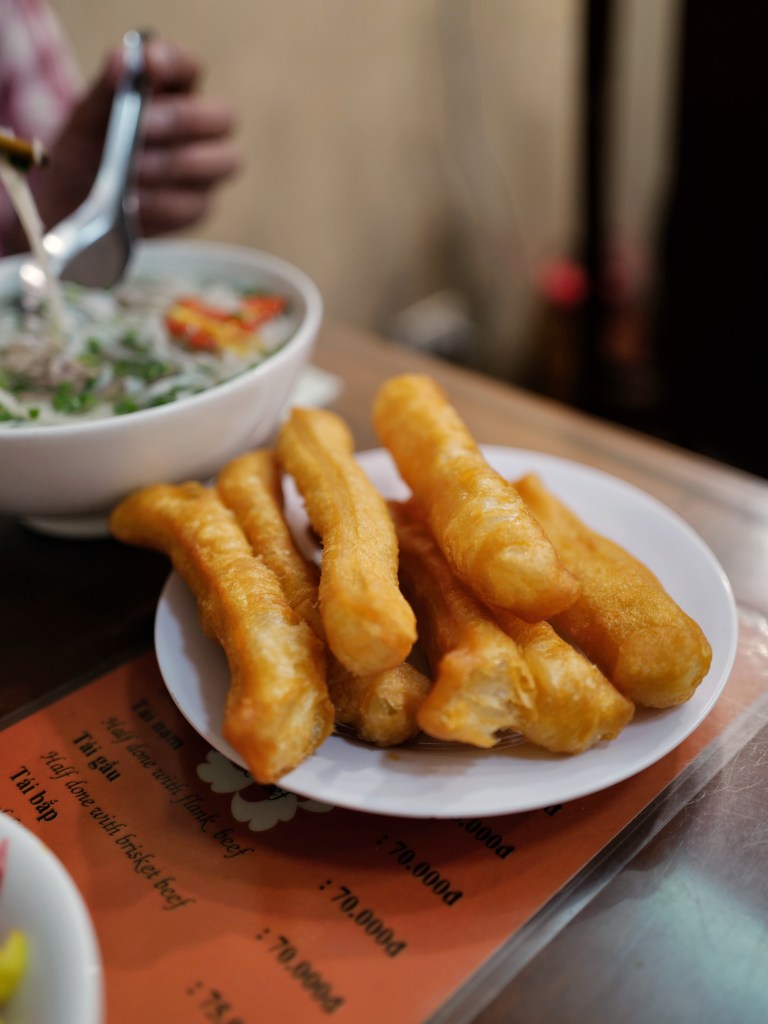 從下龍灣回來的晚上,吃了飯店附近同樣是米其林指南推薦的牛肉河粉當晚餐,網路評價兩極,自己實際吃了覺得份量大、湯頭味道算自然,牛肉不會太老,擠上檸檬汁和辣椒吃起來滿療癒~併桌對面的越南人點了油條來配河粉感覺也很棒